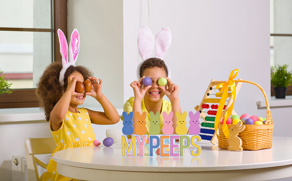FLEXIBLE ARRANGING FOR CREATIVE DECOR: Each wooden bunny is freestanding and movable, allowing you to place them on top of the MY or PEEPS blocks or arrange them separately as easter table decorations. Change your layout anytime—from a playful easter bunnies decoration to a cute peeps decor display—making your space lively and full of spring charm.