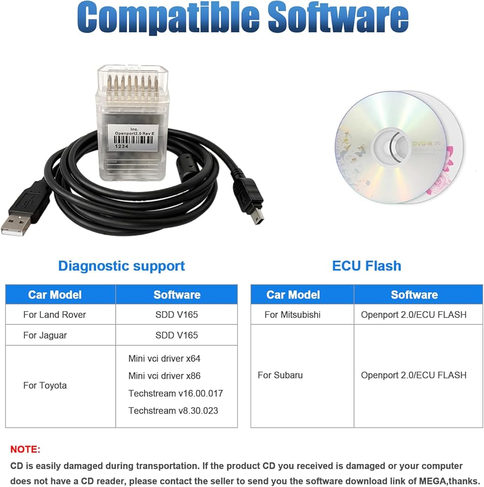 【Support Protocols and Software】This cable supports CAN 2.0 (CAN-ISO15765) and K-line, supports ISO9141 ISO14230(KWP2000) dual K line. Supports OpenPort 2.0, ECU Flash for Mitsubishi and for Subaru vehicles, Supports SDD V163 for Jaguar and for Land Rover vehicles, Supports Techstream for Toyota vehicles.