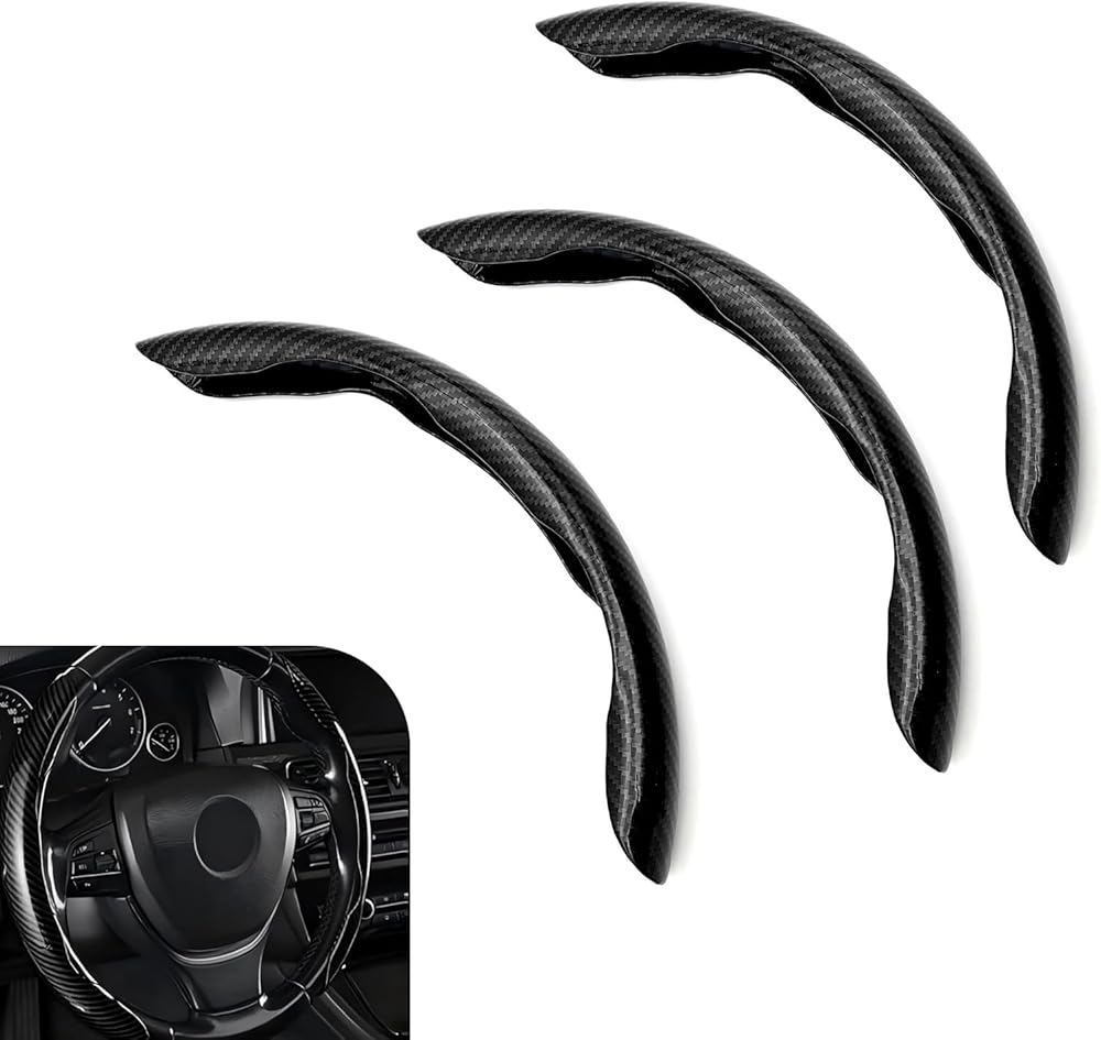 Foelony 3 PCS Car Steering Wheel Covers, Segmented Steering Wheel Protectors, Non-Slip Carbon Fiber Steering Wheel Cover, Universal for Most Car (Black)