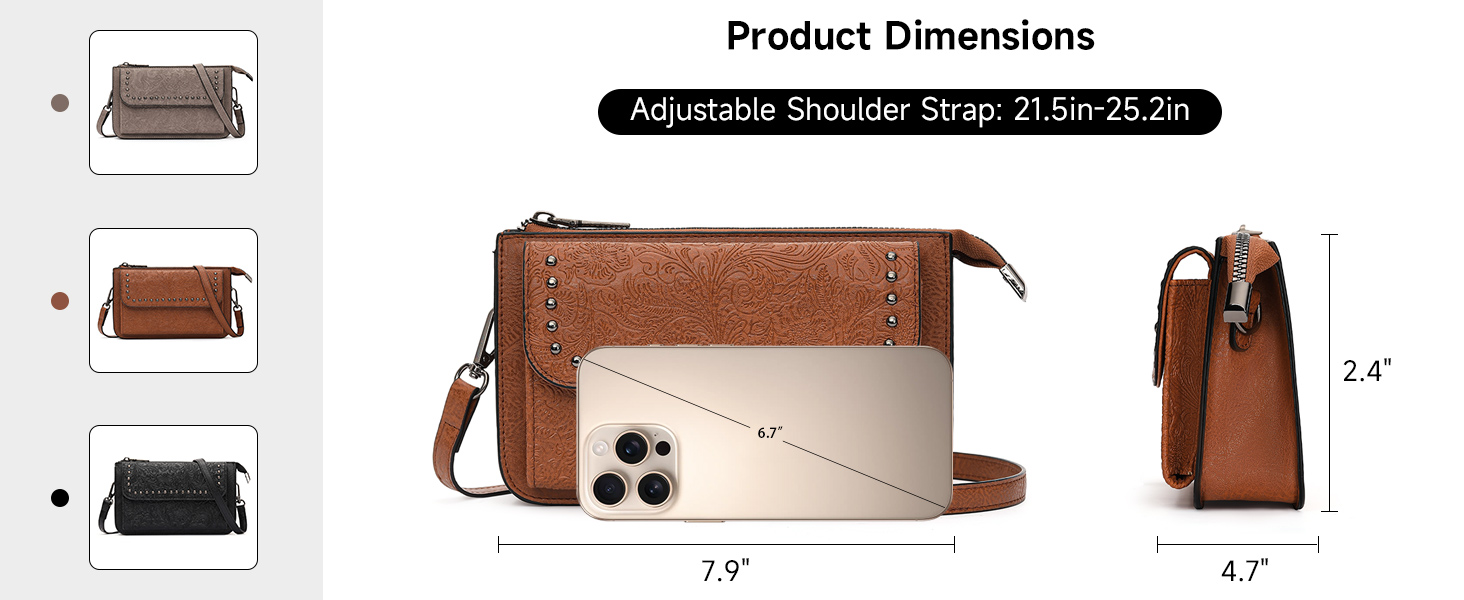 UPGRADED VERSION WALLET PURSE:The leather crossbody wallet features a front pocket with a magnetic snap button, designed to securely hold your phone & provide convenient access when you're outside. Equipped with a lightweight adjustable strap (MIN 21.5" to MAX 25.2"), could be used as a crossbody bag, shoulder bag, or handbag to complement your outfit for the day