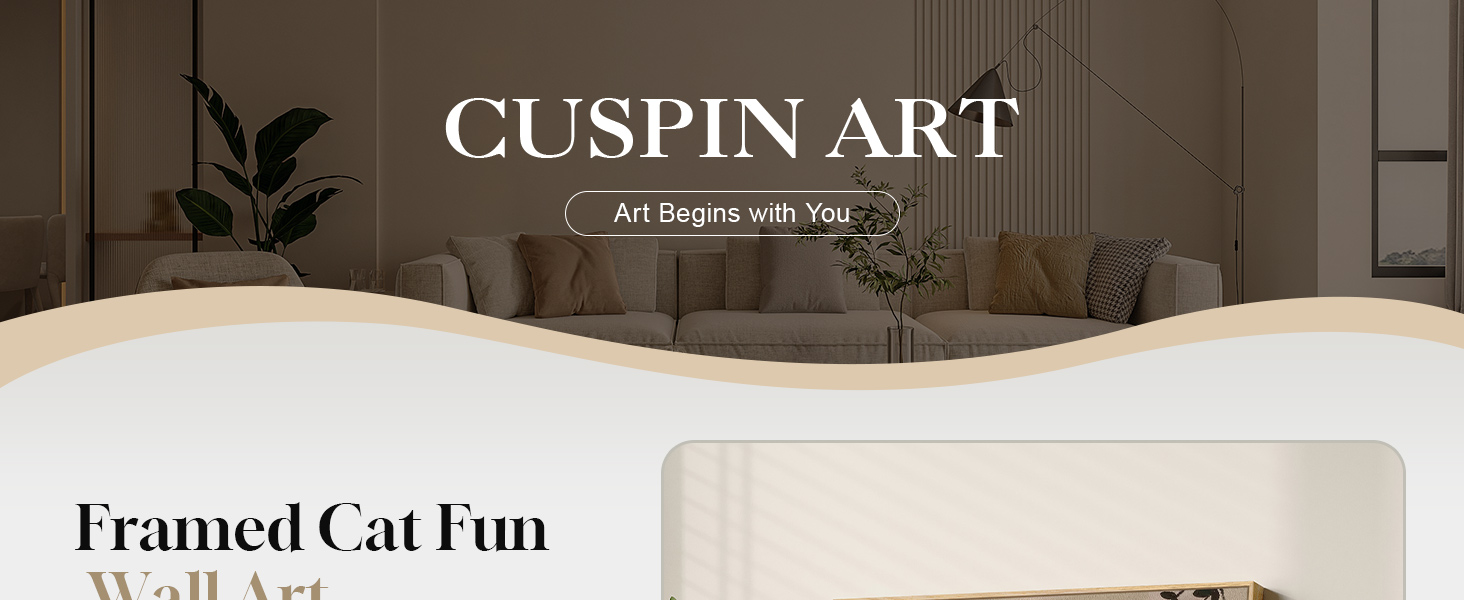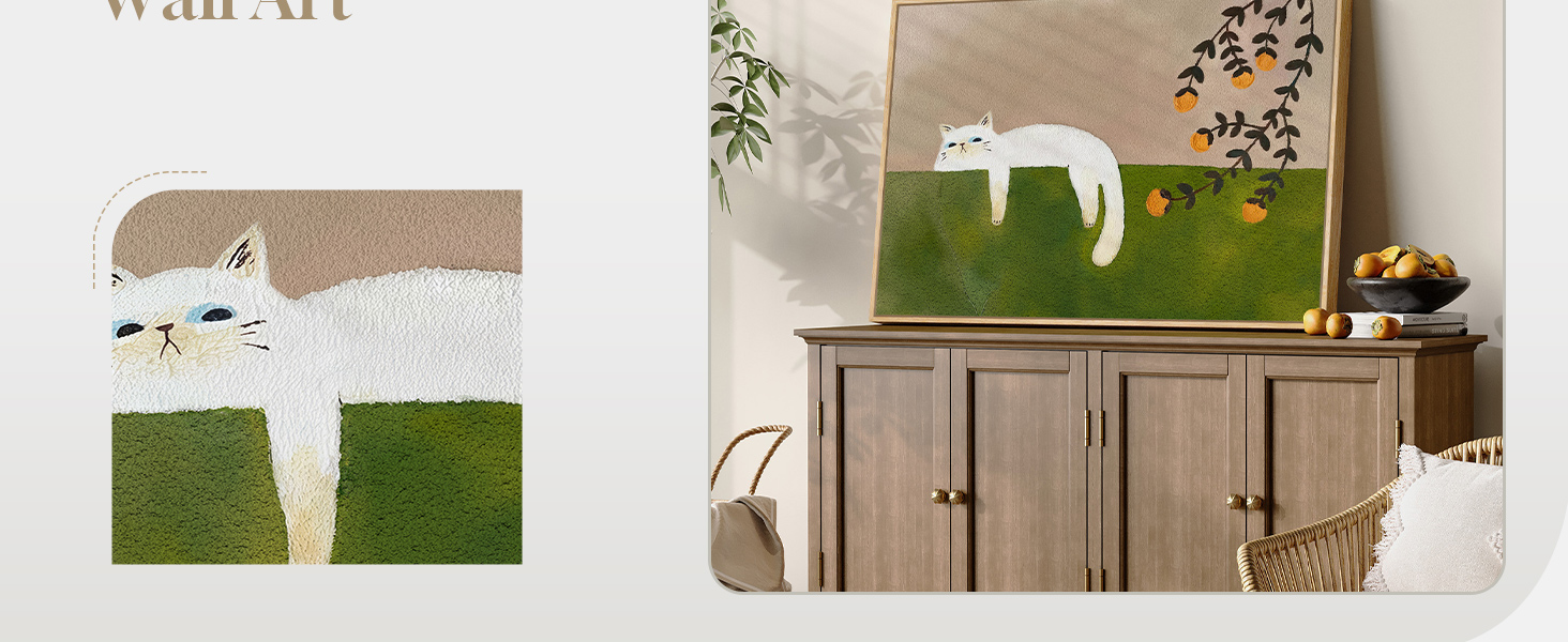 Framed Bedroom Wall Art: Large 24x36 inch framed cat artwork for bedroom walls, adding a playful yet calming focal point to your room