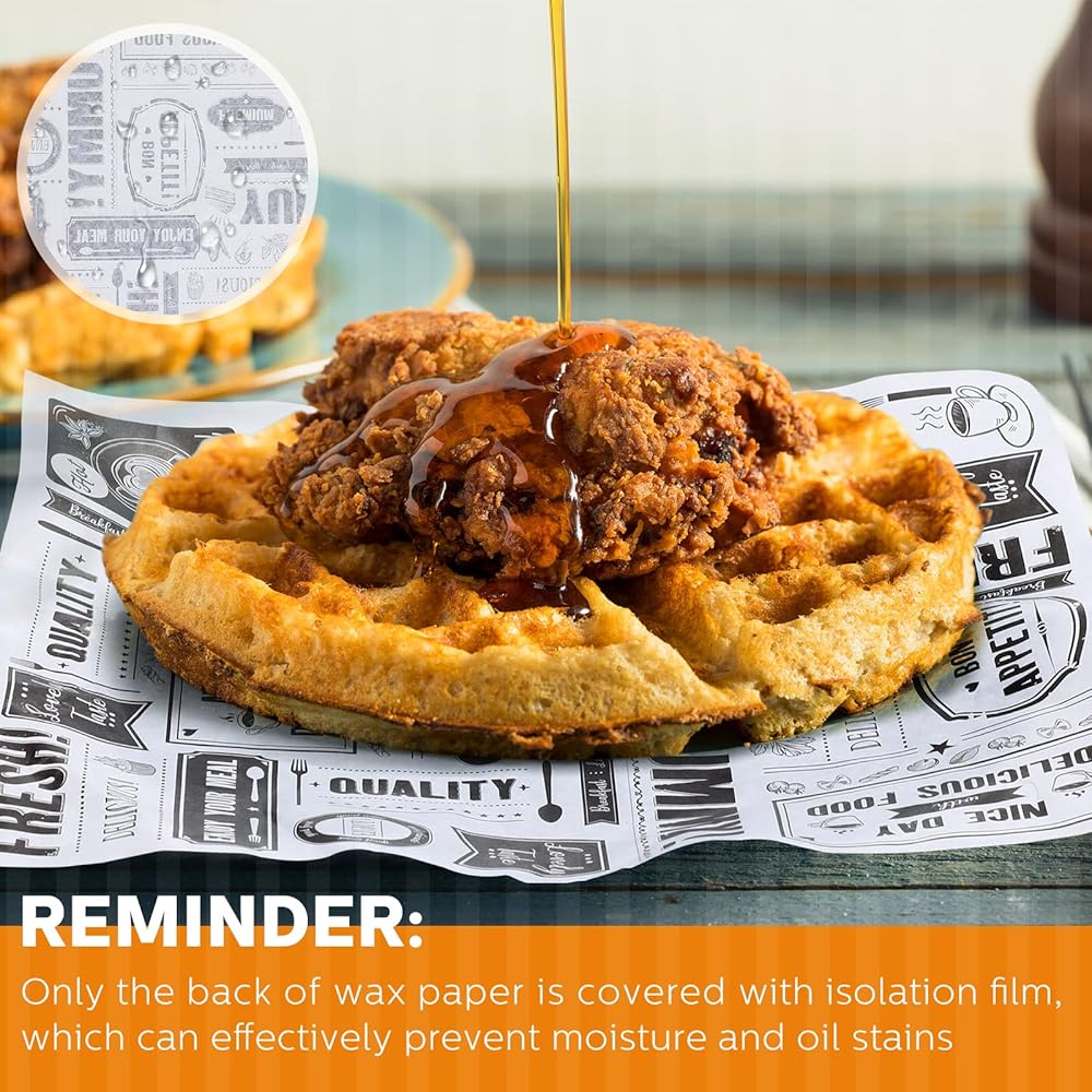 • Oil proof and waterproof: the wax wrapper tissue is covered with a layer of film, which can effectively prevent water and oil, convenient for you to pack some fried foods, such as fried chicken, French fries and so on and won't stain your hands with food and oil
