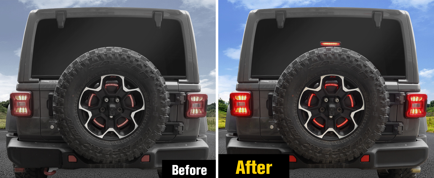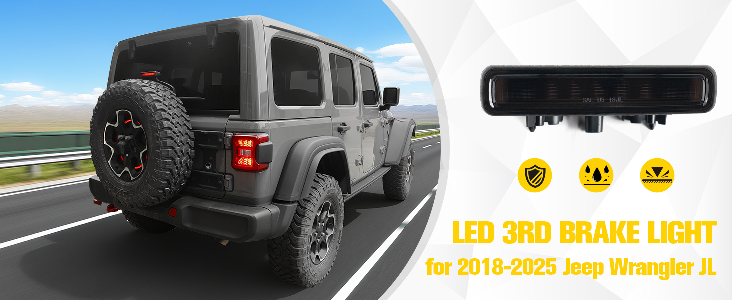 Stylish Smoked LED Design: Elevate your Jeep Wrangler JL (2018-2025) with HSUTVXPRO's smoked lens third brake light, adding a sleek, sporty look while enhancing rear visibility with full LED illumination.