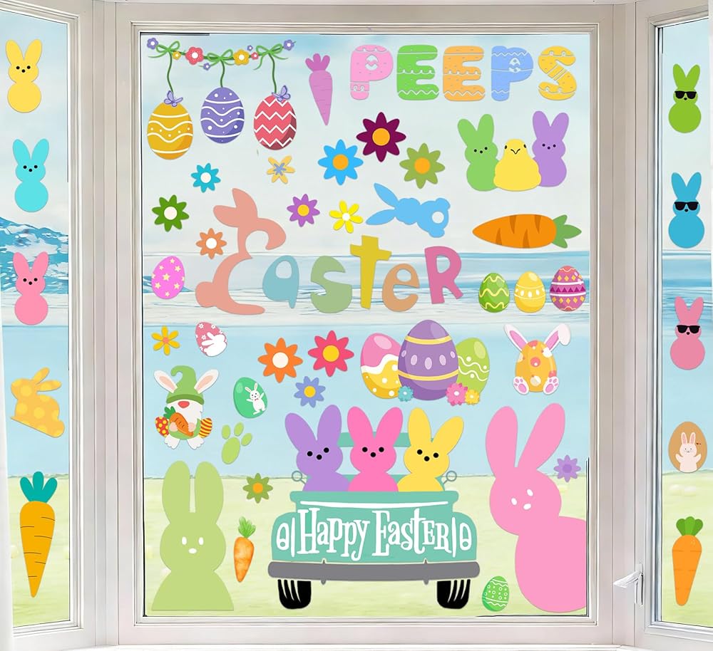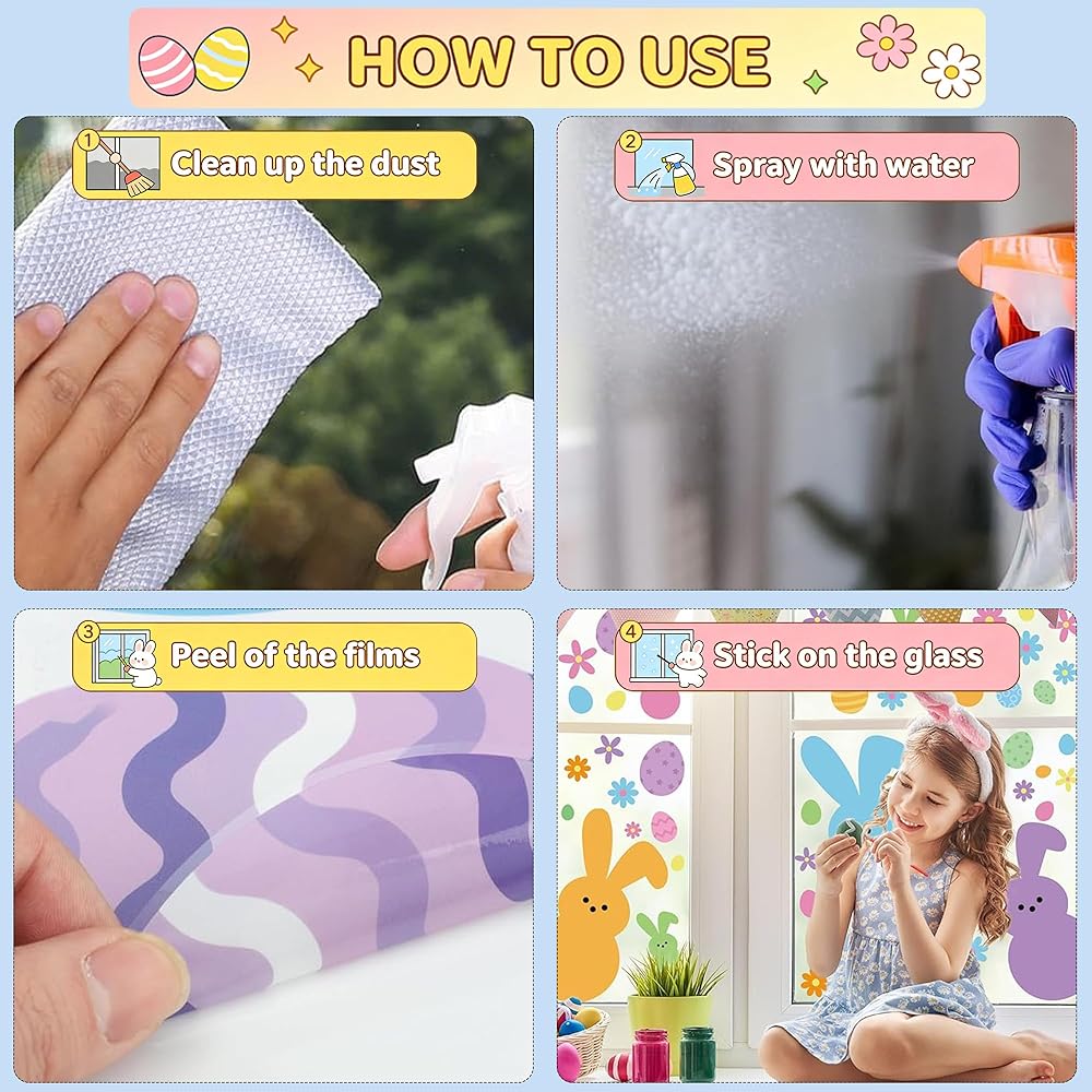Perfect for All Occasions: The window clings can be applied to most smooth surface, such as wooden furniture, floors, tiles, mirror, glass, window, showcase, store and restaurant window. Ideal for parties, these Easter Window Clings are versatile decorations that bring joy and charm during the holiday season.