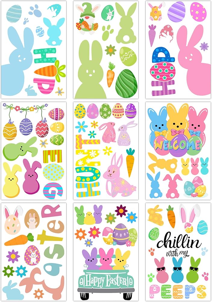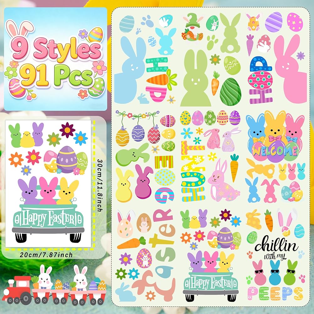 Generous Pack Size: This set includes 9 sheets with a total of 91 pieces of Rabbits and Eggs Stickers, providing ample options to creatively decorate your windows and create a cheerful Easter atmosphere.