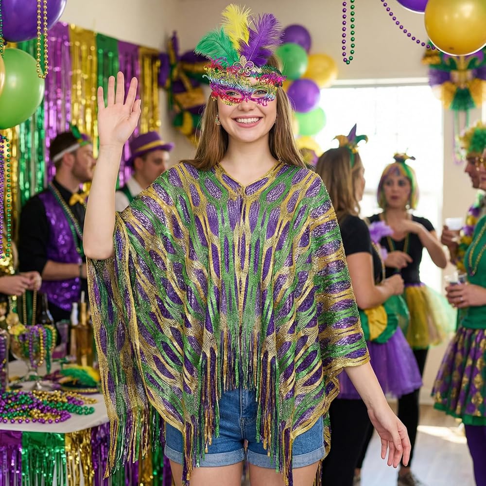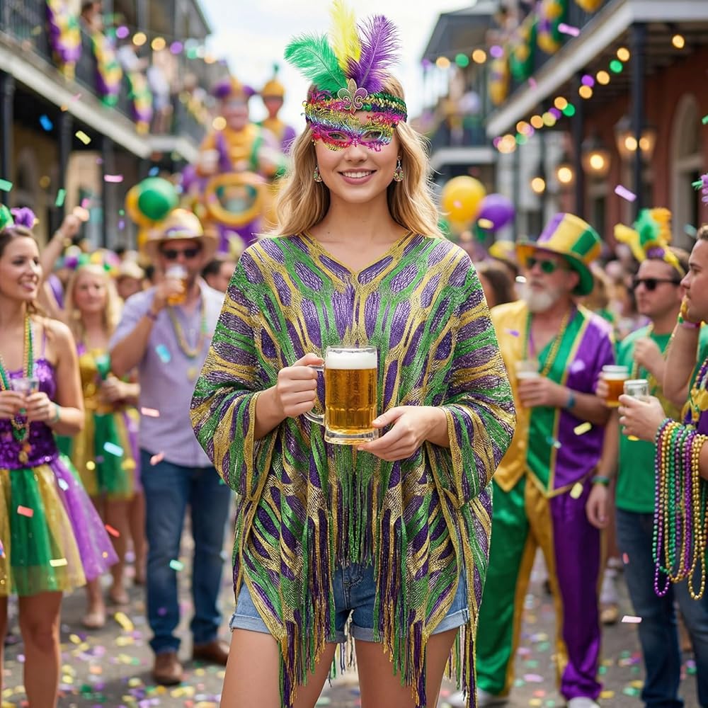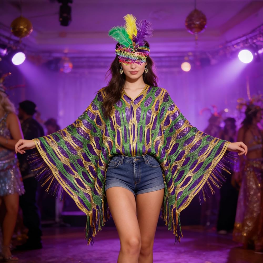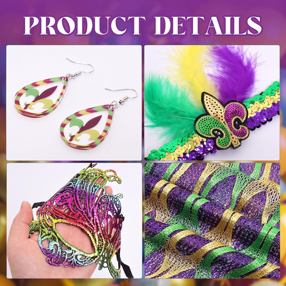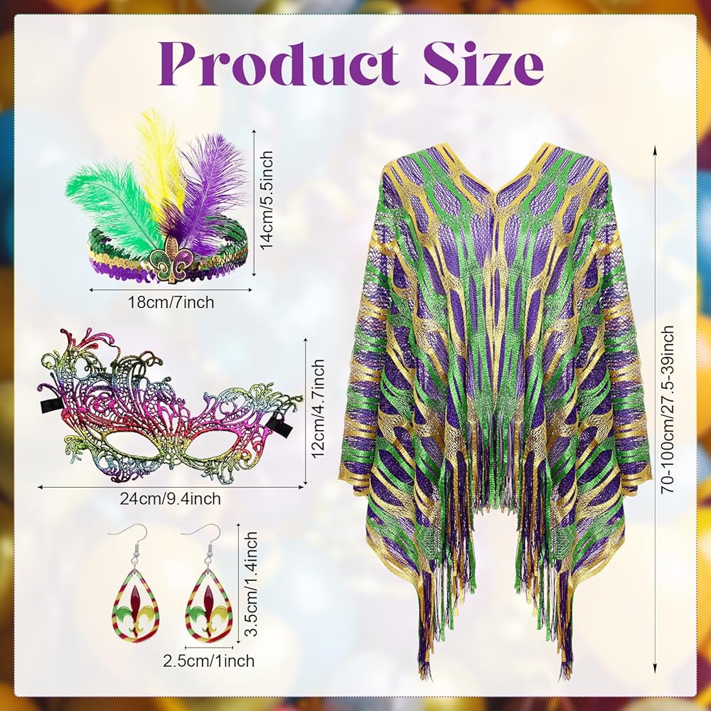 • Complete Set: From the carnival shawl scarf to the feather headband, from the delicate earrings to the distinctive mask—everything you need is included. No need to fuss over matching pieces—effortlessly create a complete, eye-catching carnival look and fully embrace the festive fun