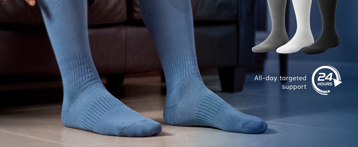 15-20 mmHg Graduated Compression for Effective Support: Delivers targeted graduated compression to boost blood flow, reduce swelling and leg fatigue, and help with leg comfort. Ideal for men & women who travel, fly, work long hours, stand all day, or enjoy daily activity