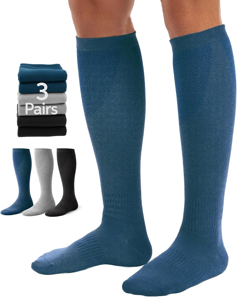 Seamless Toe & Non-Slip Cuff for Comfort: Seamless toe prevents irritation and blisters for smooth, comfortable fit. Thickened ribbed cuff stays in place all day without slipping or rolling down, making these knee high compression socks reliable for work, travel, and sports