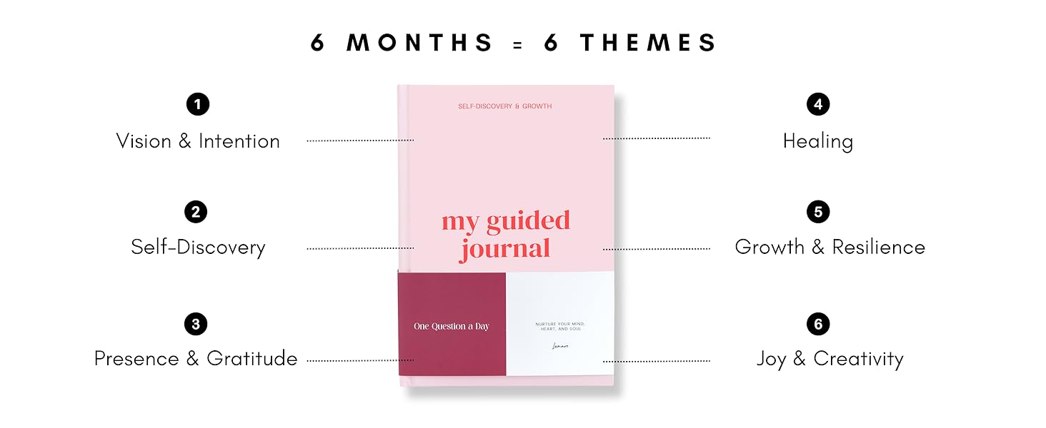 THEMED MONTHS FOR DEEPER GROWTH: Each month in this prompt journal follows a guided theme—from vision & intention to self-discovery, mindfulness, healing, resilience, and joy—so your journaling feels purposeful, not random.