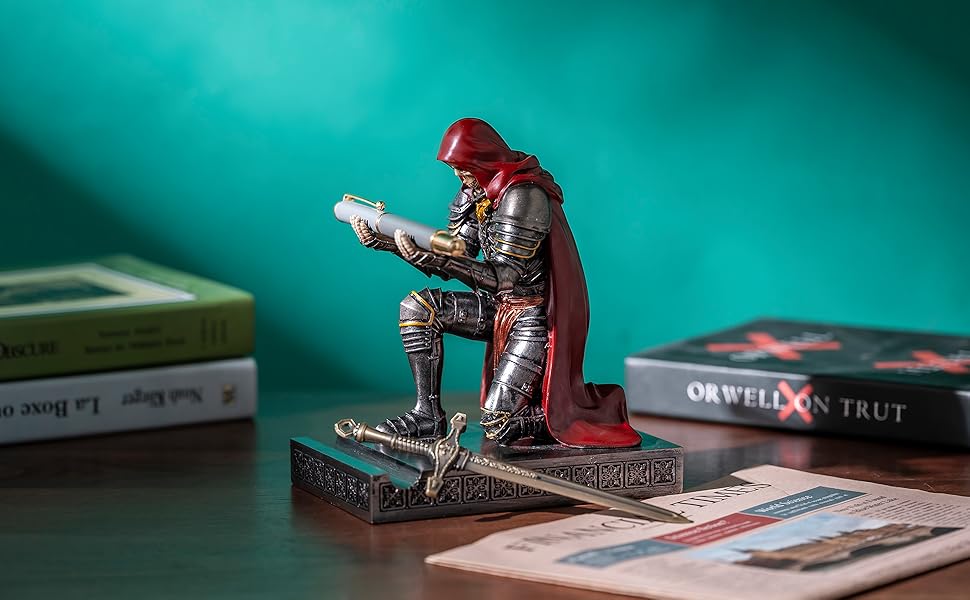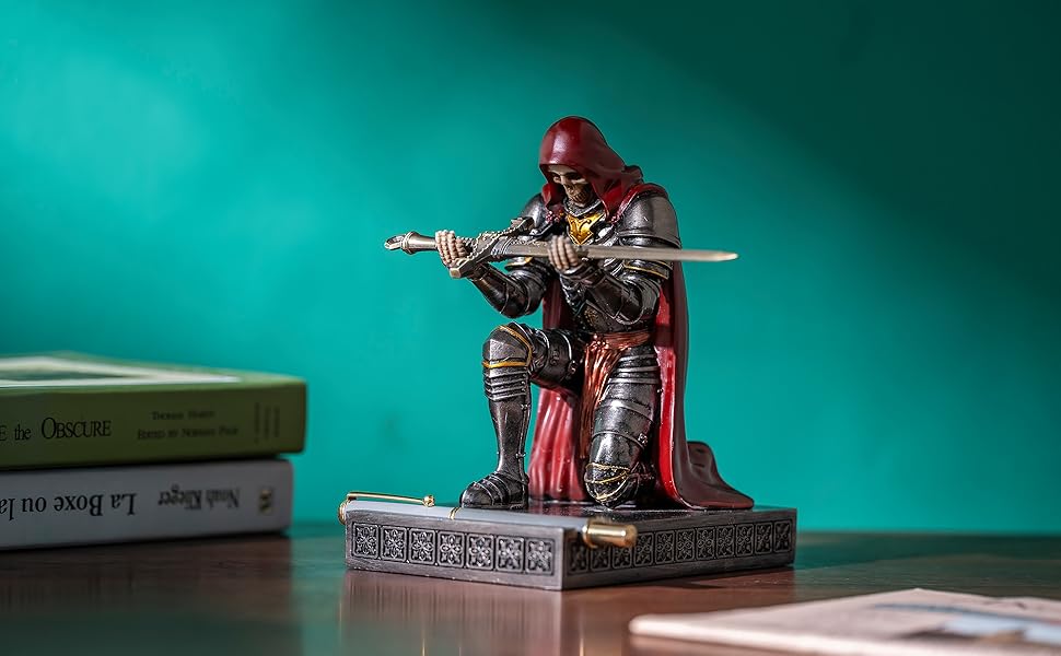 [Exquisite Gift]: This skull knight pen stand for desk with fantastic shape, looks great on desk ornament for you. Perfect as company prize, birthday, Christmas, New year's Day Gifts and others. It suitable for offices, study and living room etc.