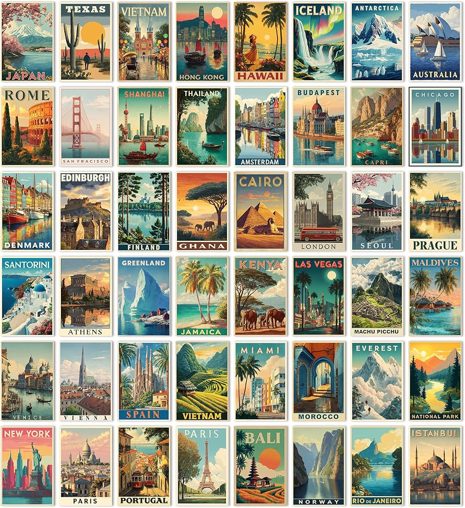 TracyArt Vintage Travel Postcards - Around The World Decorations, Vintage Travel Posters, Unframed 48 Pcs 4" x 6"