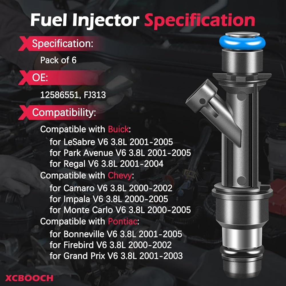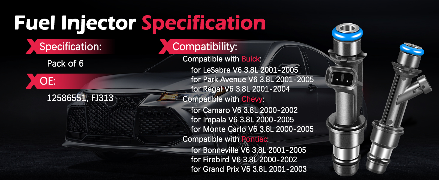 Fuel Injectors Set of 6 Compatible with Buick for LeSabre Park Avenue Regal, for Chevy for Camaro Impala Monte Carlo, for Pontiac for Bonneville Firebird Grand Prix, Replace 12586551 FJ313