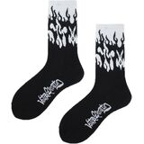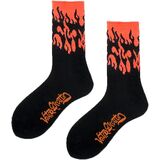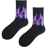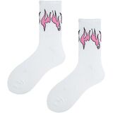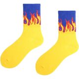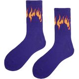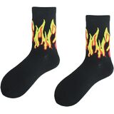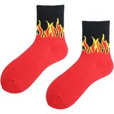 hip hop , ribbed knitted, contrast color patchwork, flame print, mid-calf anklet socks.