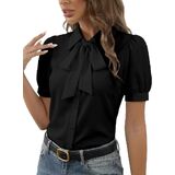 Collar bow tie knot blouse features voluminous short puff sleeves with cuffed hems, adding a feminine, retro-inspired touch to your work or formal wardrobe.