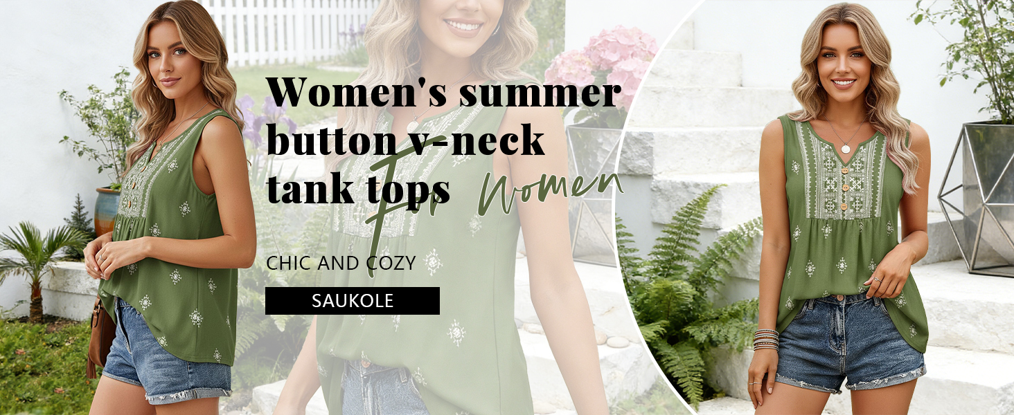 Lightweight & Breathable Fabric: Women's summer button v-neck tank tops made of high-quality fabric. Feel soft to the touch, which keeps you cool and comfortable in hot summer weather—perfect for all-day wear.