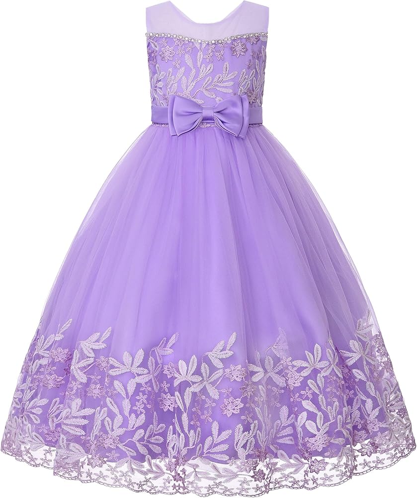 Uhnice Flower Girl Dress Sleeveless Embroidered Tulle Gown for Wedding Birthday Party