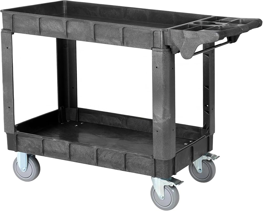 MUTI-FUNCTIONAL - 2 Shelves unit on 5 inches industrial wheels (2 with brake) to hold and move many small and large appliances. Making it ideal for tools, equipment, and supplies in garages, warehouses, and workshops, simplified the transporting of heavy and bulky loads.