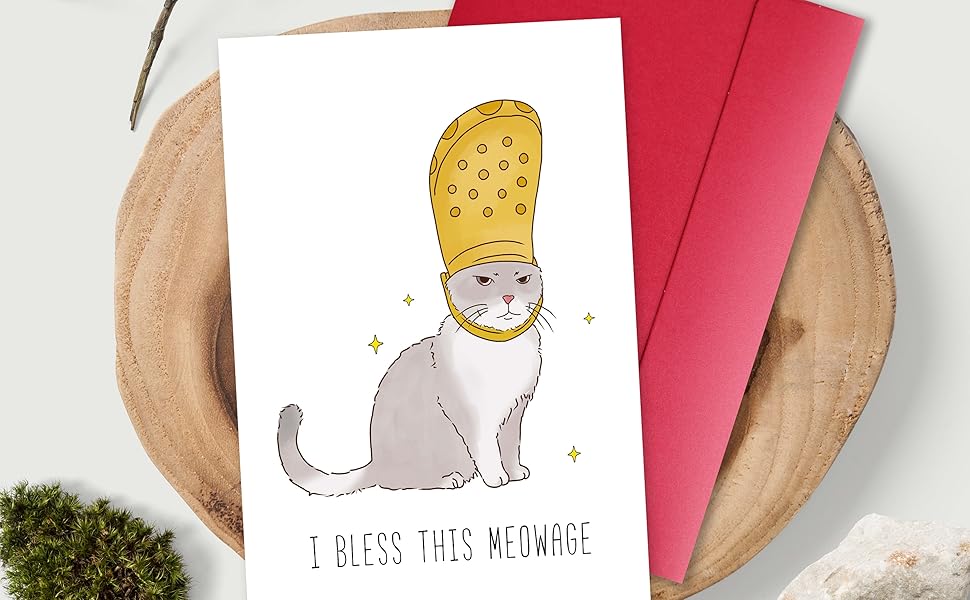 Funny Pope Cat Meme Wedding Card, Hilarious Marriage Pun Anniversary Card for Cat Lovers, Gift for Couple, Friends, Husband Wife, Just Married Joke Card