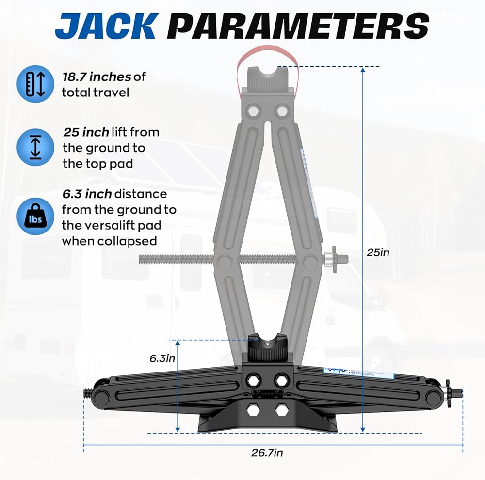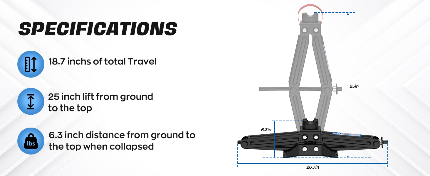 Portable & Lightweight Design - At only 12 lbs and featuring a convenient carry handle, this compact scissor jack is simple to store and take along, ideal for road trips or vehicle emergency kits.