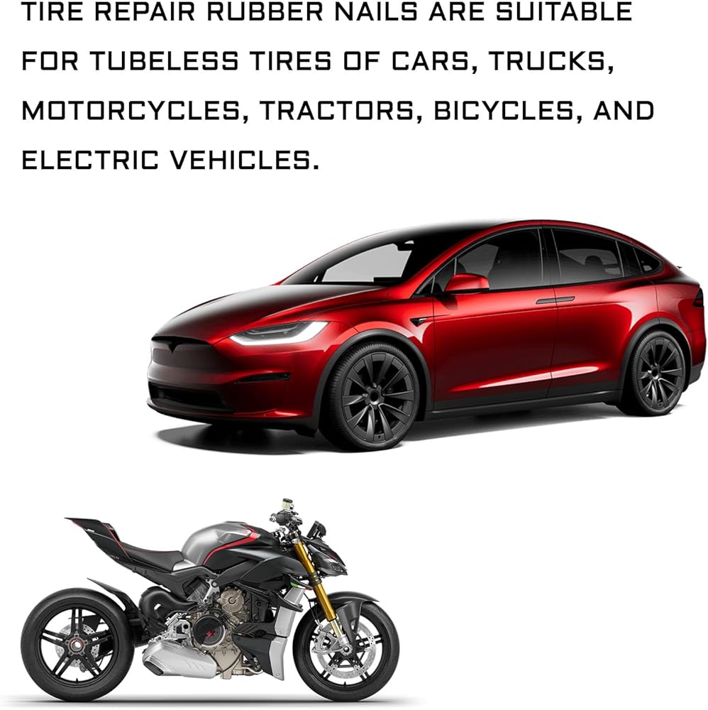 【Wide Application】This universal tire repair rubber nail is suitable for all tubeless vehicles on the market, including cars, motorcycles, trucks, bicycles, ATVs, tractors, and buses tires. Whether for routine tire maintenance or emergency tire puncture repair, these tire repair rubber nails can meet your needs anytime