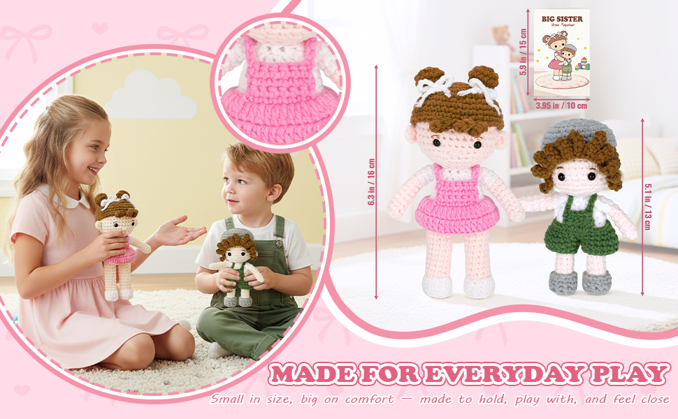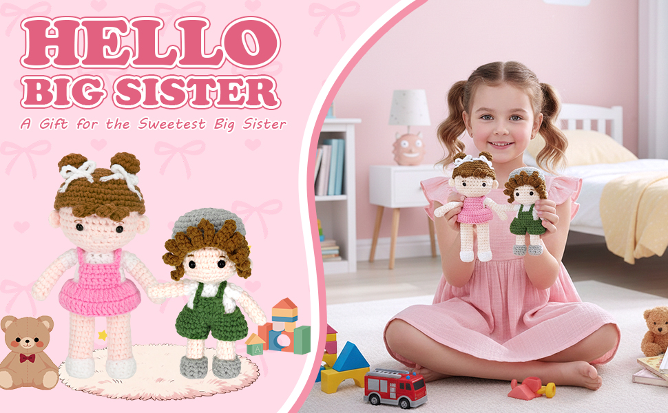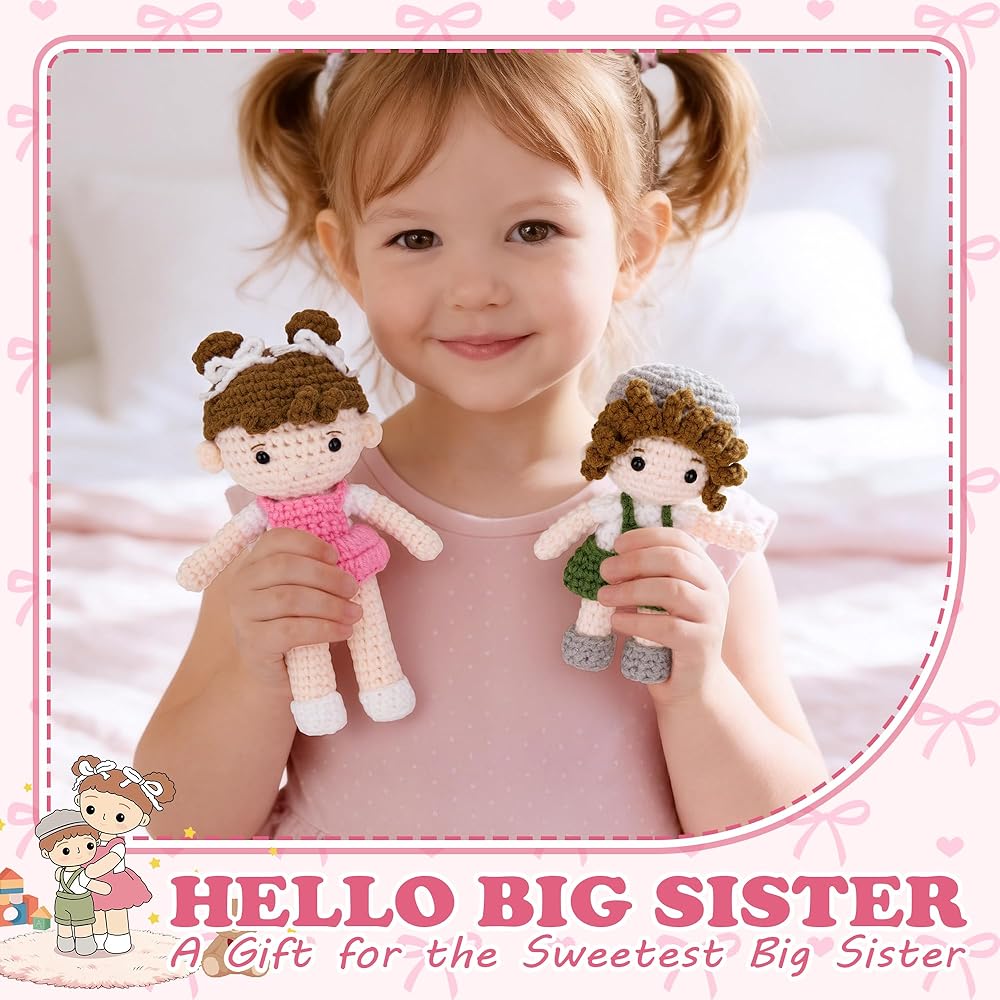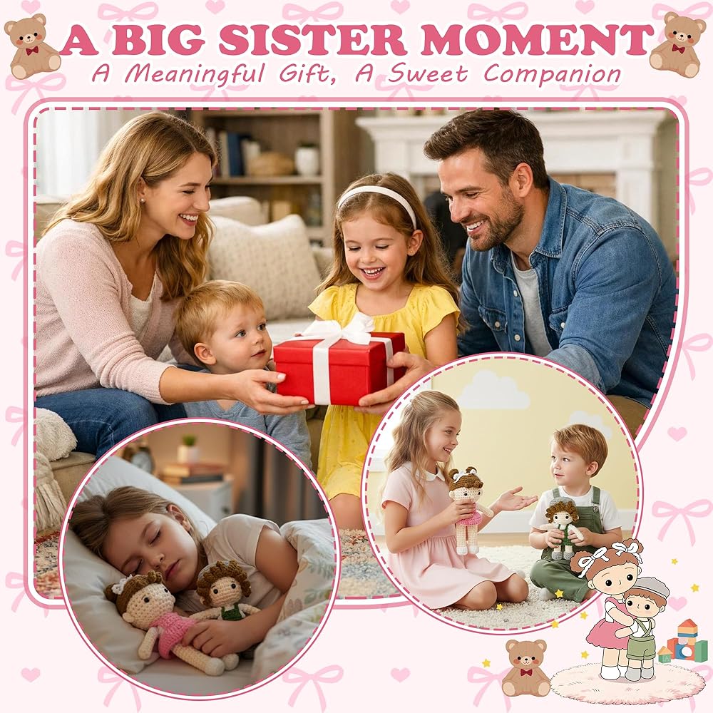 Meaningful Big Sister Gift Set – This crochet doll set is designed to celebrate a little girl's special role of becoming a big sister, pairing a big sister doll with a little brother doll to symbolize love, connection, and sibling bonding during a growing family moment.