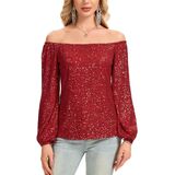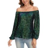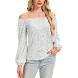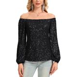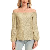 【FEATURE】: Women's glitter dressy blouses , featuring a casual loose fit, all-over shiny sequins, and a fully lined interior. Designed with Long sleeves, a flattering off the shoulder, and stretch fabric for comfortable movement.