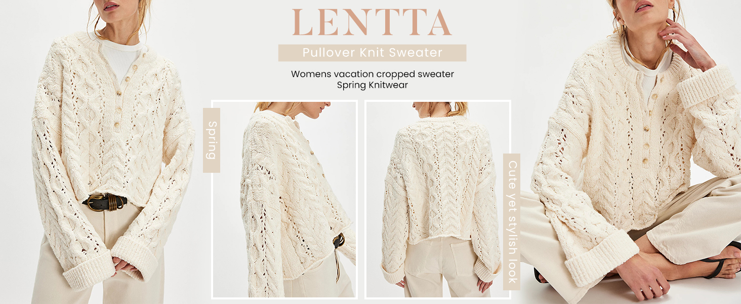 Womens cropped casual cable knit pullover fall winter versatile sweater
