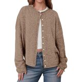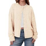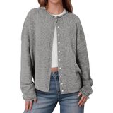 ·Feature: Crew neck, multi-button front placket, long sleeves, open-front design, relaxed fit. Features a lapel collar, cuffed sleeves, and ribbed hem for textured dimension. Functional front buttons allow for customizable closure and versatile styling.