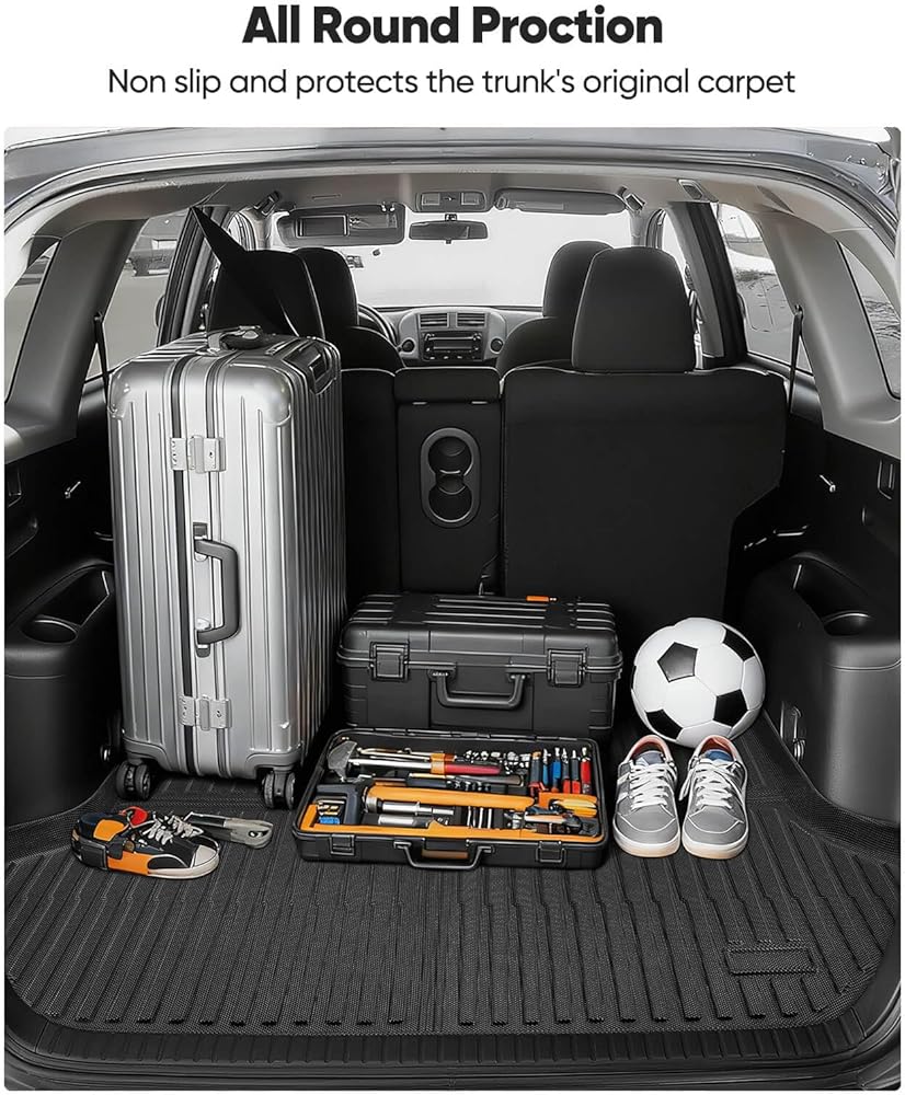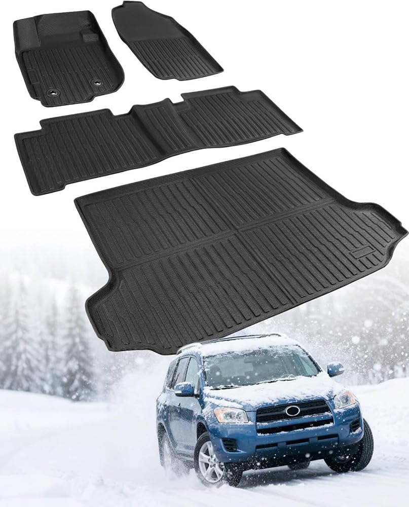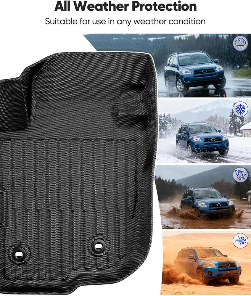 All-Weather Protection : Ready for any climate or mess, these all weather floor mats for RAV-4 2006-2012 are designed with deep channels and raised edges to form a protective barrier.Crafted from high-performance TPE material, these 2006-2012 for RAV4 accessories are built to endure daily wear and tear. The TPE construction offers exceptional resilience, resisting cracks and maintaining its integrity through intense summer heat and freezing winter temperatures. This liners not only shields your vehicle's flooring for the long haul but also contributes to a safer, more pleasant cabin atmosphere for you