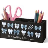 This wooden organizer features three compartments and comes in both transparent and black styles with decorative printed patterns. It helps store pens, makeup brushes, remote controls, and other small items. Suitable for use on desks, vanities, coffee tables, or shelves, it adds both function and a decorative touch to various spaces.