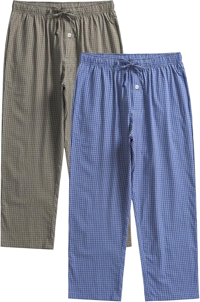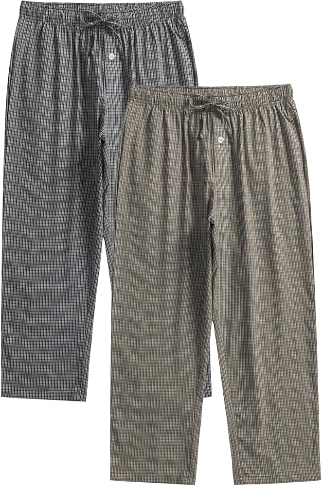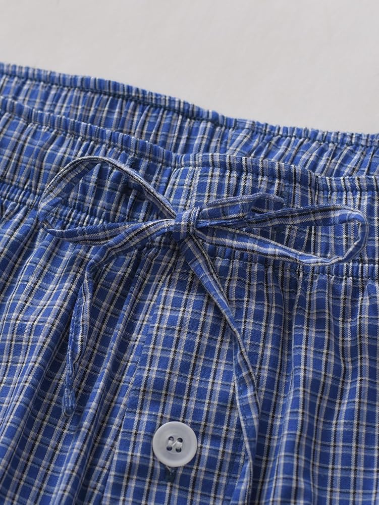 Esenchel Men's Plaid Cotton Pajama Pants Lightweight Sleep Lounge Pants
