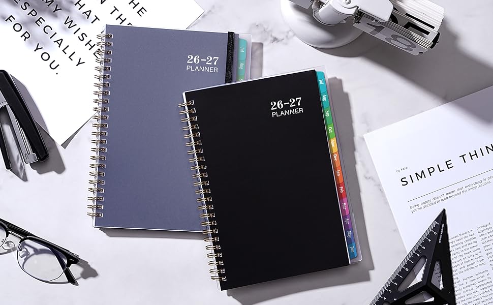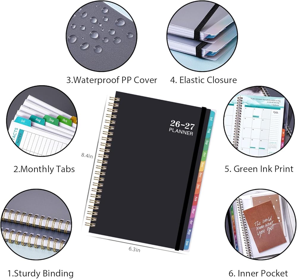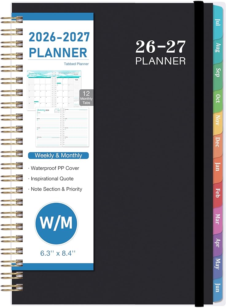 📓 2026-2027 Planner Overview - This 2026-2027 planner with transparent & waterproof PP cover, overs 12 months from July 2026 - June 2026. The size is 6.3'' x 8.4'', comfortable to carry and use. 12 monthly colorful tabs dividers for an easier year-round tracking and quickly access.