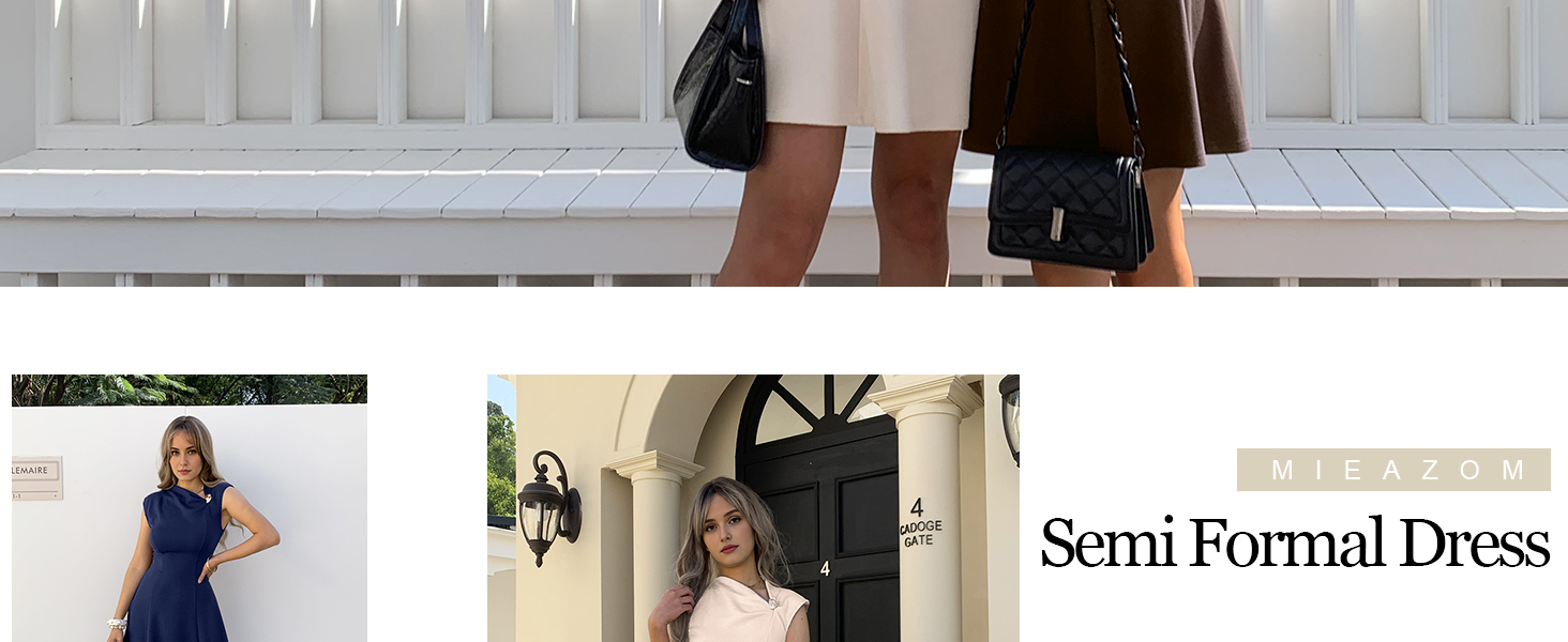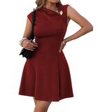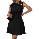 Unique Asymmetric Design with Metal Button Accent: The mini dress features a chic, slanted asymmetric neckline elevated by a subtle metal button detail, adding a modern, sophisticated focal point. Its tailored sleeveless cut highlights your arms, while the cinched waist and flared A-line skirt effortlessly accentuate your natural curves, creating a leg-lengthening silhouette that flatters all body types.