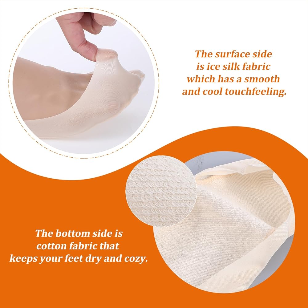 【Composite Fabric Comfort】These socks utilize a combination of fabrics for targeted comfort. The sole area incorporates cotton material, chosen for its moisture-absorbing properties to help manage perspiration under the foot. For the upper and other parts of the sock, a smooth, cool-touch fabric to ice silk is used, which aims to enhance breathability and overall ventilation.
