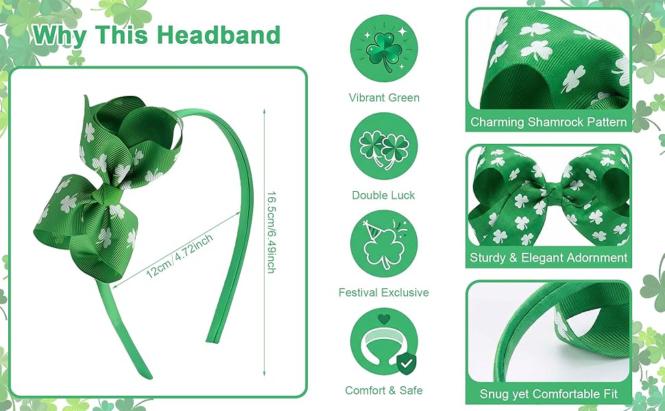 ST. PATRICK'S DAY ESSENTIAL – GREEN SHAMROCK HEADBAND: Iconic green clover design – must-have St. Patrick's Day headband for women & girls, adds festive Irish charm to parties, parades, and Irish-themed celebrations.