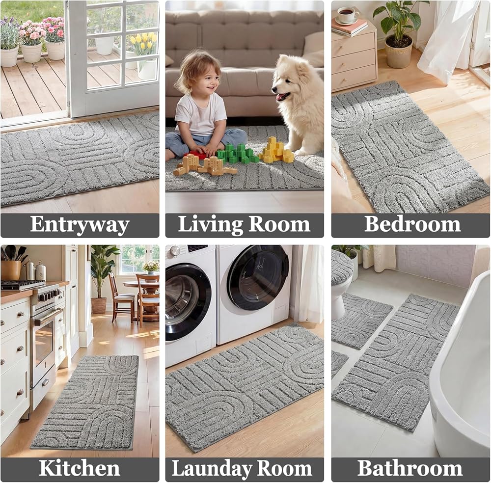 【Versatile Uses】This bathroom rug set made with simple design that effortlessly complements any bathroom decor, bringing a charming and delightful experience to your home. Available in multiple sizes to suit various spaces, it's perfect for bathrooms, kitchens, bedrooms, living rooms, entryways, staircases, balconies, laundry rooms, pet houses, pet mats, and more.