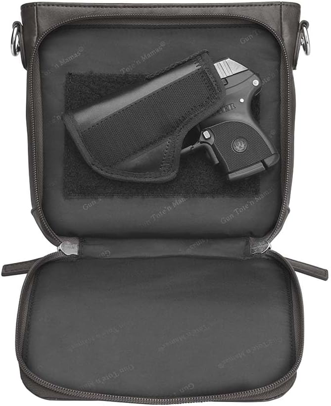 The multi-zippered gun compartment includes special padding to prevent imprinting and a mini holster that can be adjusted to the draw that fits YOU. It has been tested with Ruger LCP, Kahr 9, Kahr 380 and will fit similar size firearms.