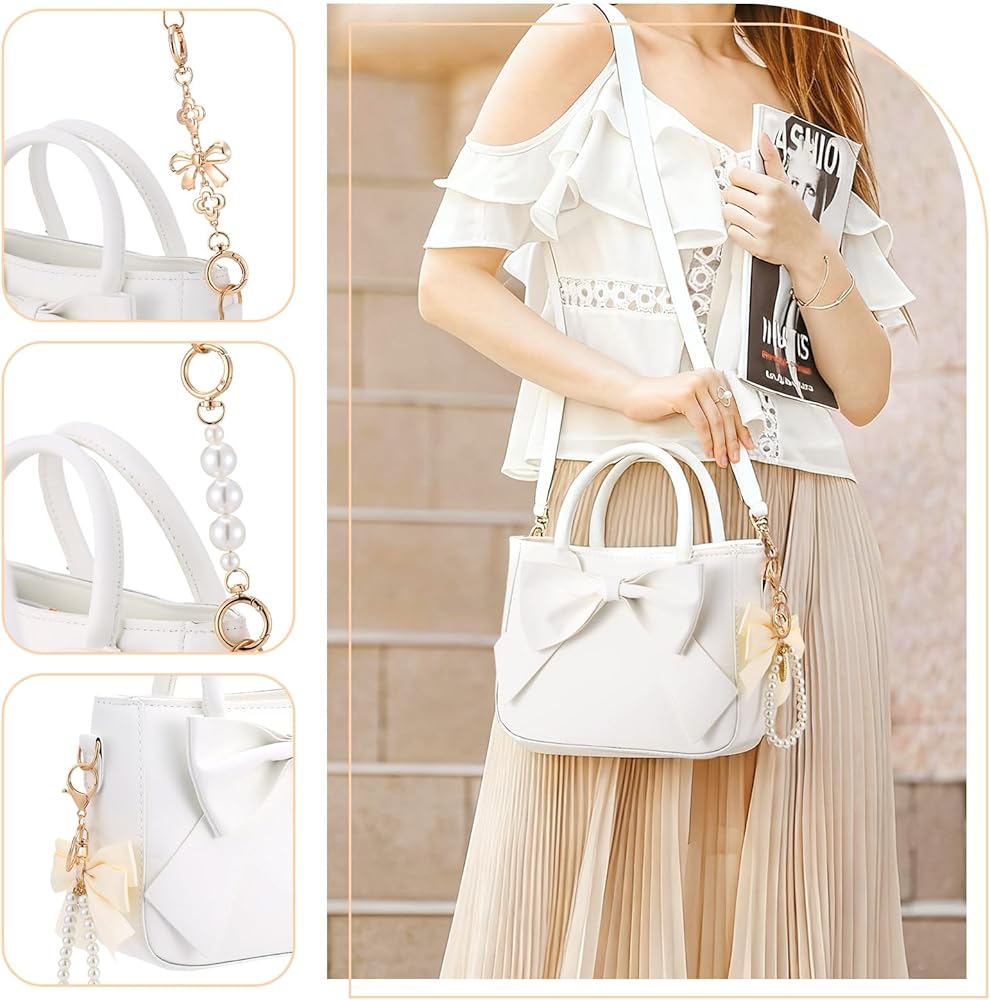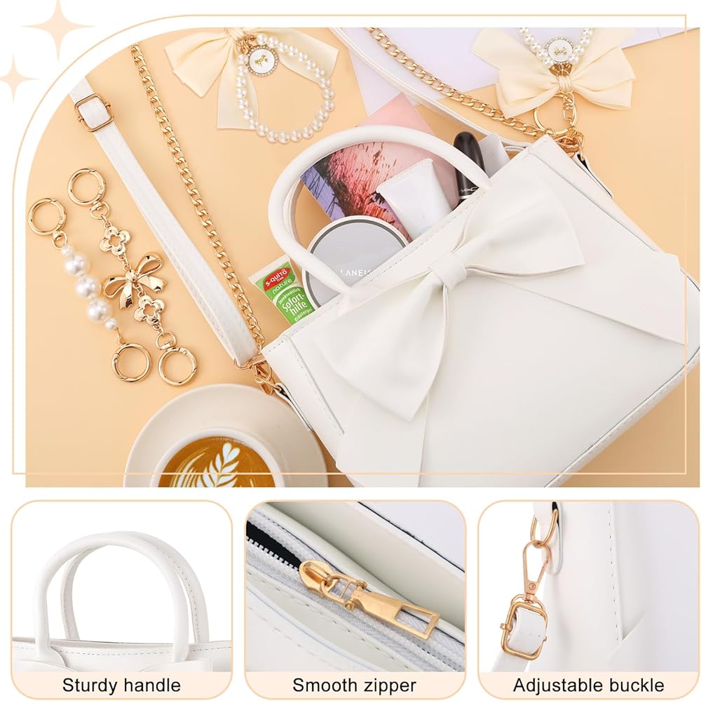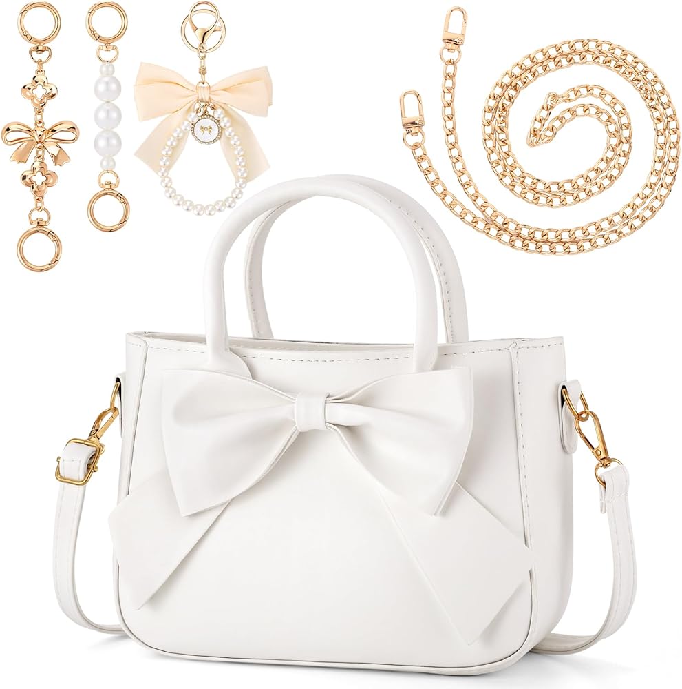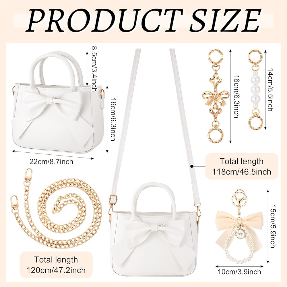 5 Pack White Purse for Women Bow Leather Crossbody Bag with Extender Chain Adjustable Shoulder Strap