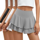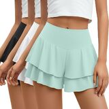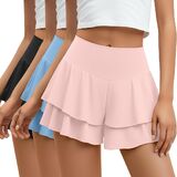 3 Pack Women Tennis Shorts Flowy High Waist Double Ruffle Butterfly Shorts Athletic Golf Workout Shorts with Pockets in Kuwait