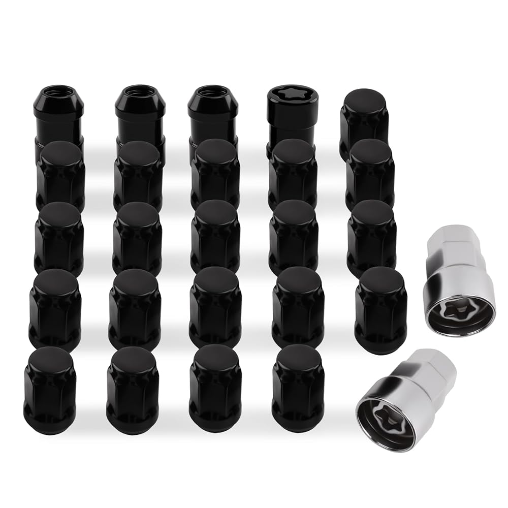 【Wheel lock size】12x1.5 with a 60° conical seat, 1.37" tall,set of 20 wheel nuts+4 locks +2 keys One for normal use and one for spare. No more worries about losing the key.