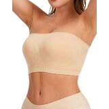[High Side & Fixed Pads]: The strapless bandeau bra with high side wing cut effectively gathers the chest and prevents side spillage. The seamless tube bra with soft and high elastic fabric provides gentle but reliable support without tightness