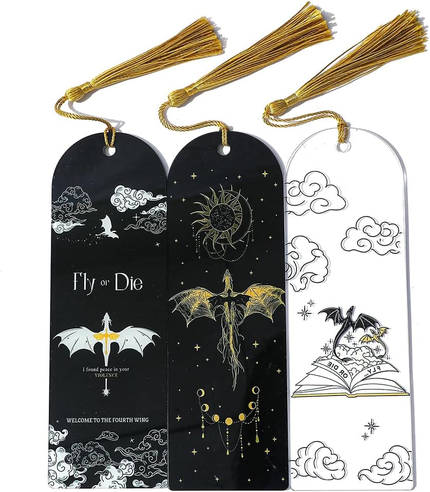 Fourth Wing Dragon Bookmark Set - Fantasy Dragon Acrylic Bookmarks for 4th Wing Novel Fans Women, Retired, Nurses, Librarians, Tasseled Book Accessories, Page Readers