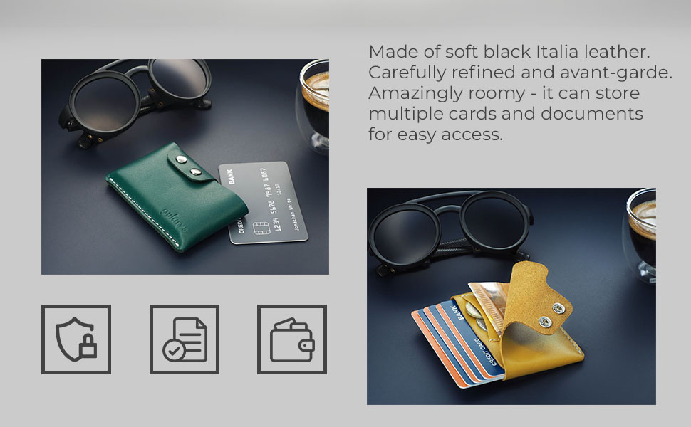 PULARYS Mini Wallet HOBBY - Credit Card Case - Italian Leather - Space for up to 8 Cards - Pockets for Coins and Bills - Modern Design For Men and Women - Fashionable Colors