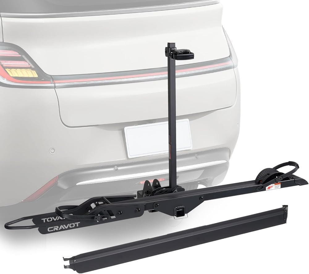 100lbs Capacity: CRAVOT ebike rack with a ramp, holding up to 100lbs heavy bike. Fitting any vehicle equipped with a 2-inch receiver and accommodating ebikes up to 5'' wide and with a wheelbase up to 50''.