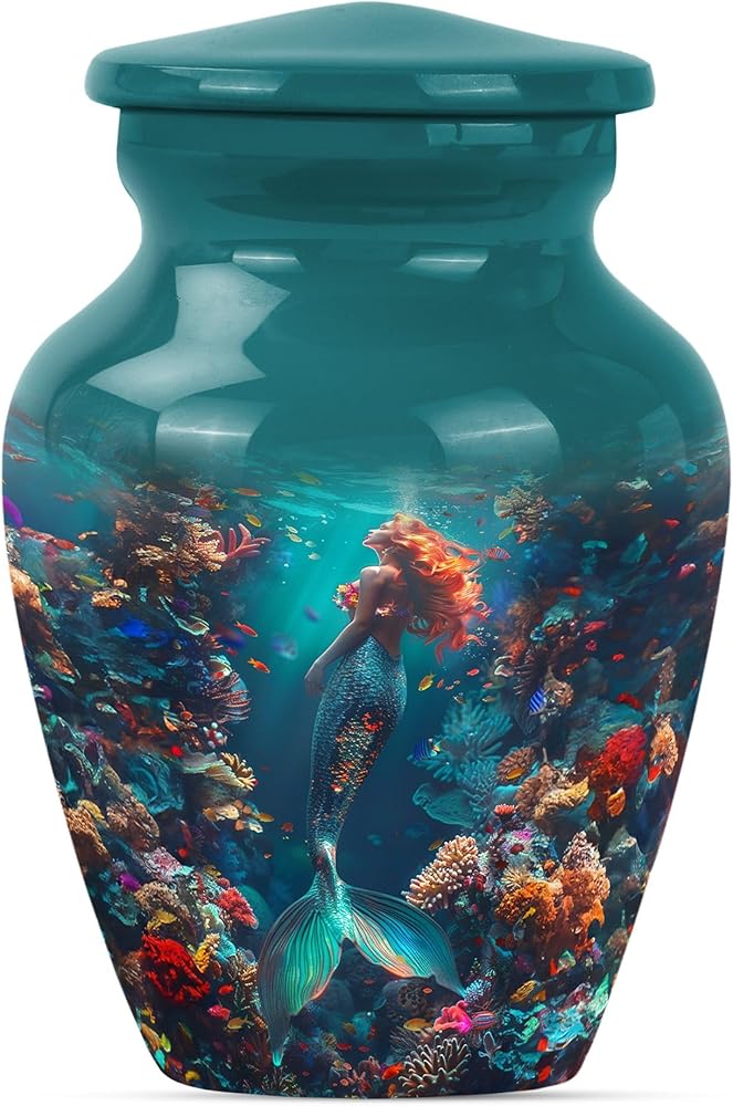 Mermaid Kingdom - Funeral Urns - Cremation Burial Urns - 10 Inch - Large with Velvet Bag - Burial Urns for Ashes - Urn Human Ash Adult Man - Ash Urns for Humans - Decorative Urns for Ashes in Kuwait