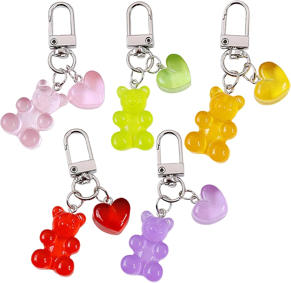 Tizee 5-Pack Colorful Gummy Bear Keychain with Heart Pendant - Creative Bag Charm for Car Keys, Cellphones, Backpacks, Resin Animal Shaped Decor Accessory