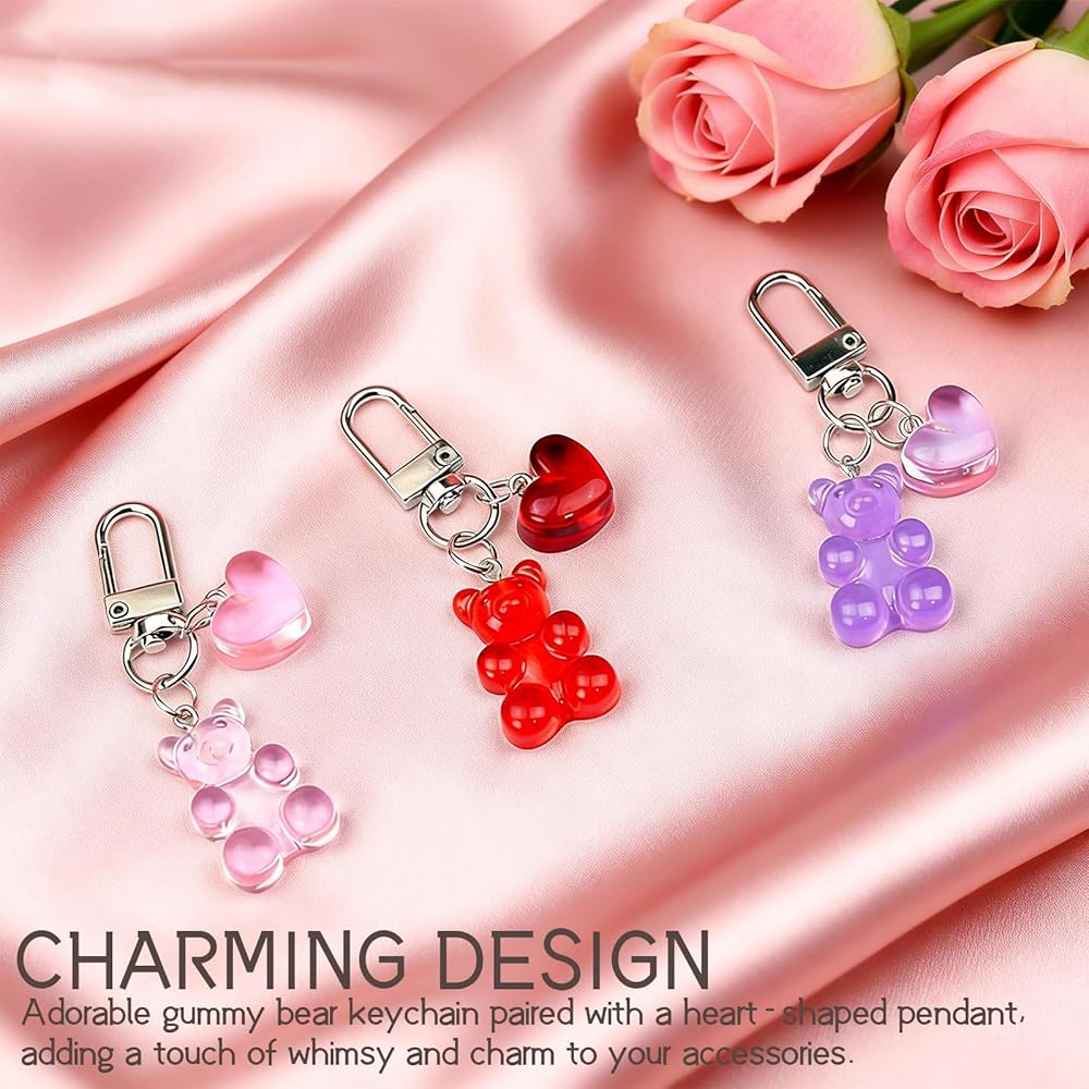 Charming Design: Adorable gummy bear keychain paired with a heart-shaped pendant, adding a touch of whimsy and charm to your accessories.