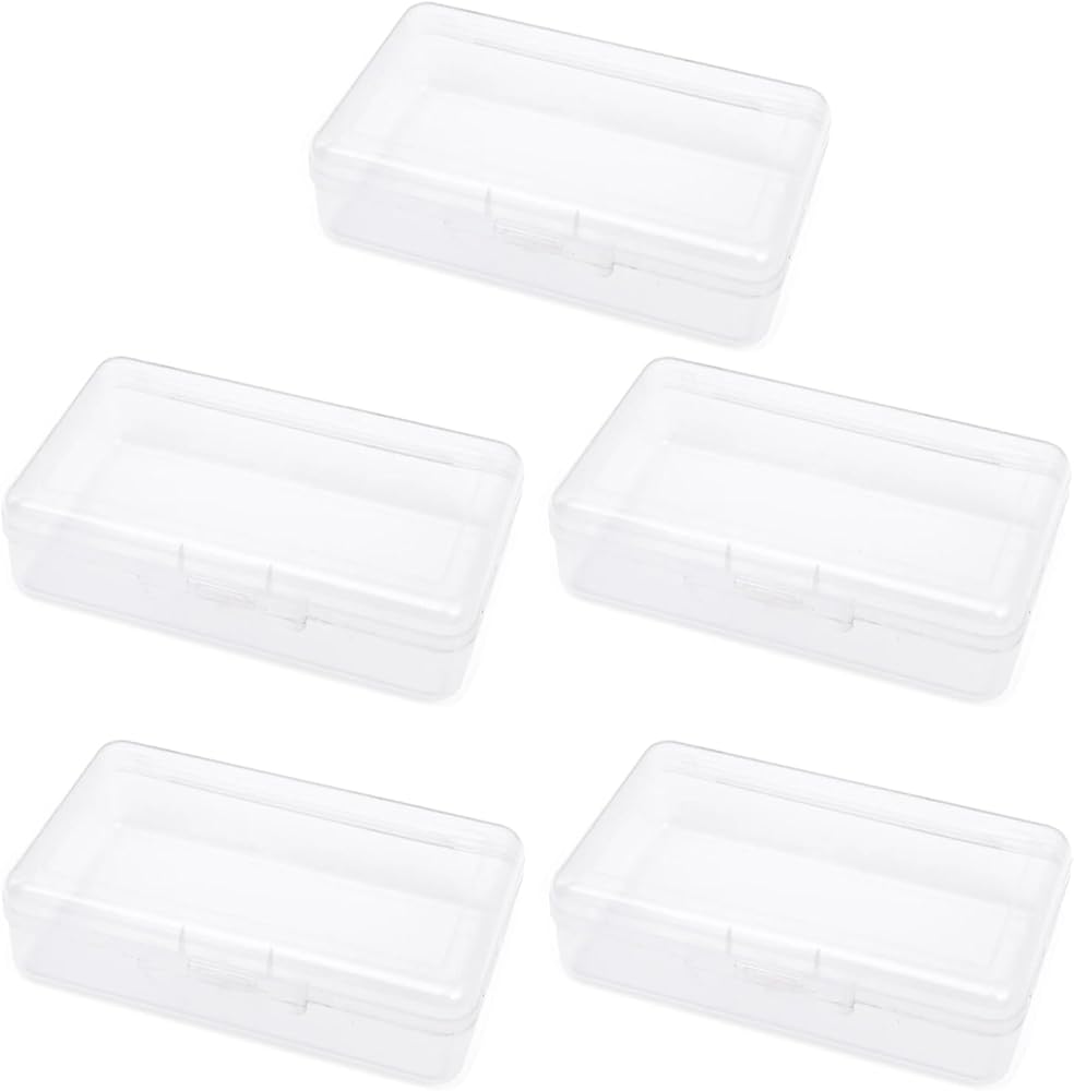 5PCS Mini Clear Plastic Jewelry Boxes, Storage Box with Lid, Small Storage Containers, Travel Case for Beads, Small Items, Cards, Jewelry, Earring, Crafts, Hardware, 4.5 x 3.3 x 1.1 Inches