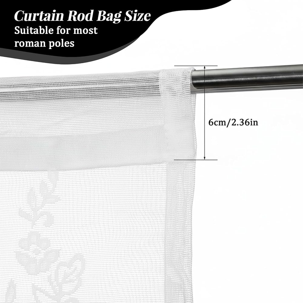 Convenient Installation: The rod pocket design of small curtain, with a pole thread of 2.36 in, allows for easy installation.You can quickly and hassle - free hang the blooming vine elegance curtain on their existing curtain rods, saving time and effort.You can also use curtain rings with clips to hang our shorter curtains.