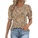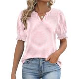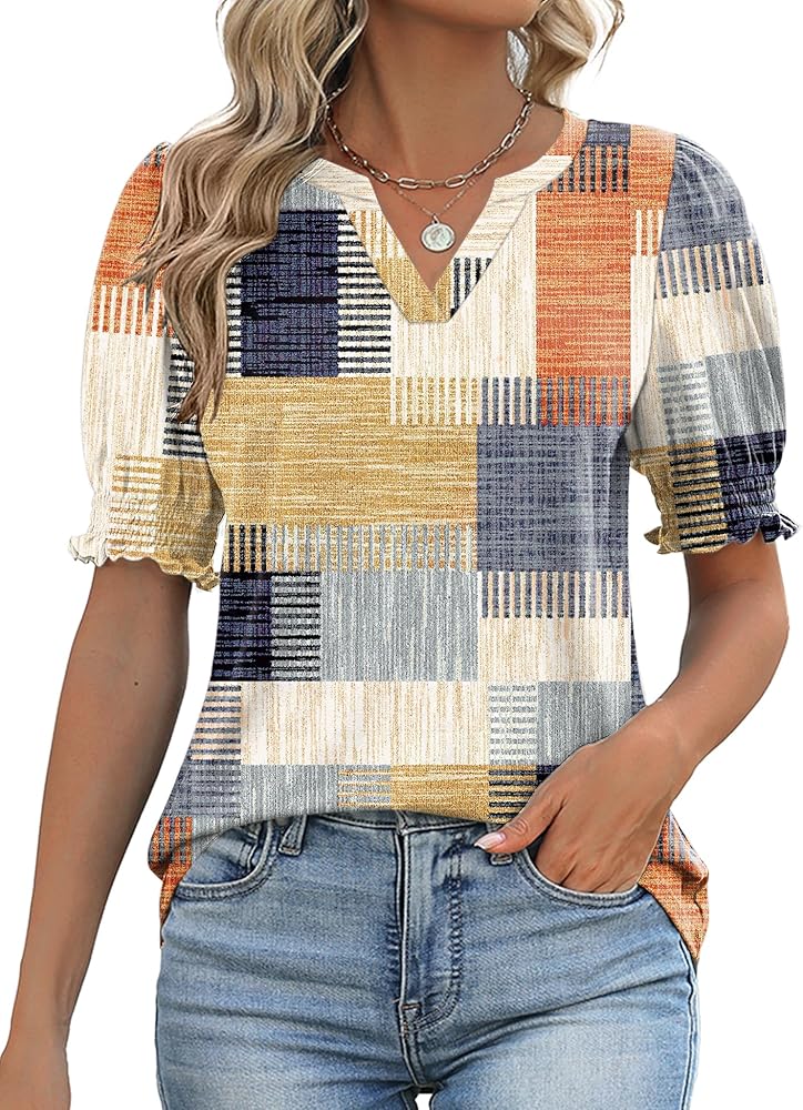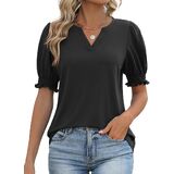 #Classic V-Neck with Puff Sleeves# Features a simple V-neckline and subtle puff sleeves for an elegant, understated look that pairs easily with any outfit.